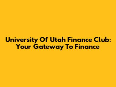 University Of Utah Finance Club: Your Gateway To Finance