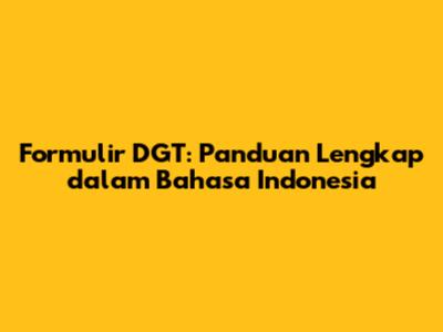 Formulir DGT: Panduan Lengkap Dalam Bahasa Indonesia