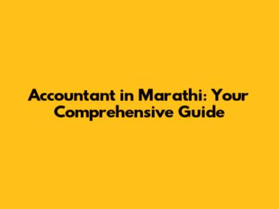 Accountant In Marathi: Your Comprehensive Guide