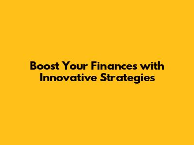 Boost Your Finances With Innovative Strategies