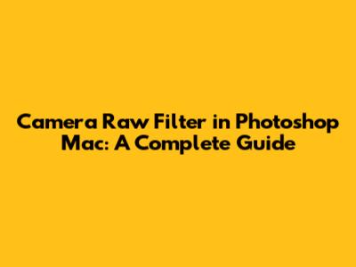 Camera Raw Filter In Photoshop Mac: A Complete Guide