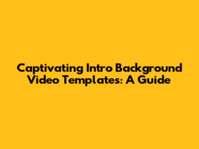 Captivating Intro Background Video Templates: A Guide