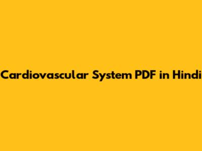 Cardiovascular System PDF In Hindi: Download Now!