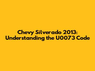 Chevy Silverado 2013: Understanding The U0073 Code