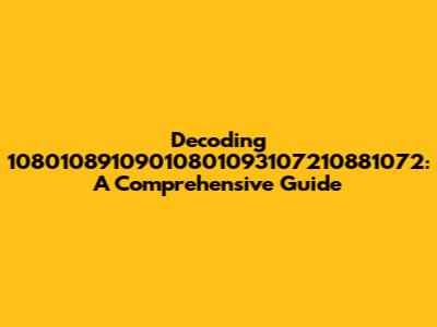 Decoding 10801089109010801093107210881072: A Comprehensive Guide