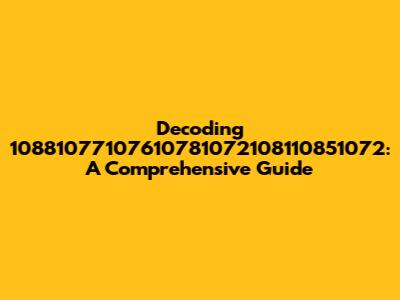 Decoding 10881077107610781072108110851072: A Comprehensive Guide