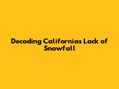 Decoding California's Lack Of Snowfall