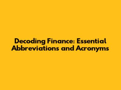 Decoding Finance: Essential Abbreviations And Acronyms