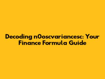 Decoding N0oscvariancesc: Your Finance Formula Guide