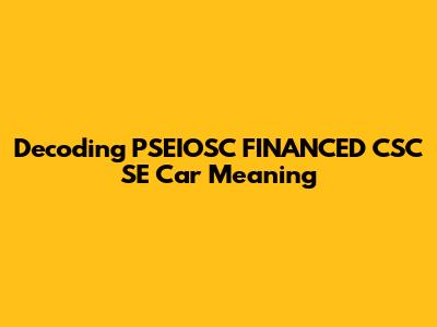 Decoding PSEIOSC FINANCED CSC SE Car Meaning
