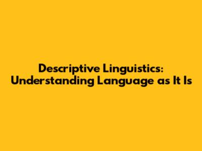 Descriptive Linguistics: Understanding Language As It Is