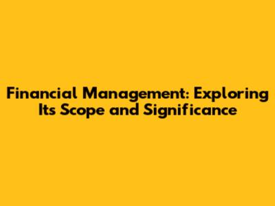 Financial Management: Its Scope And Importance