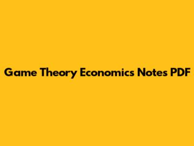 Where to Find Game Theory Economics Notes in PDF Format