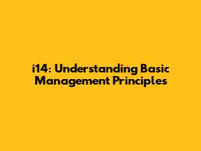 I14: Understanding Basic Management Principles
