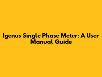 Igenus Single Phase Meter: A User Manual Guide