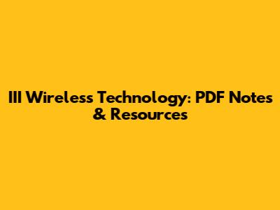 III Wireless Technology: PDF Notes & Resources