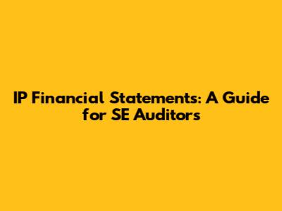 IP Financial Statements: Guide For SE Auditors