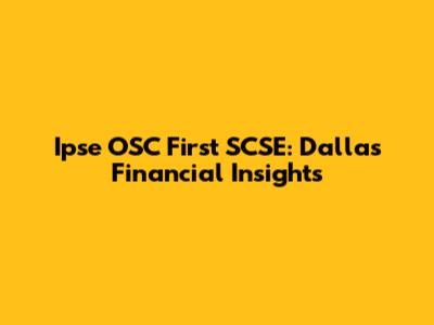 Ipse OSC First SCSE: Dallas Financial Insights