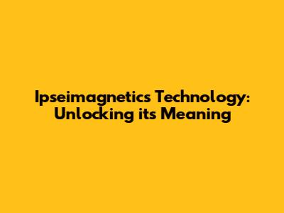 Ipseimagnetics Technology: Unlocking Its Meaning