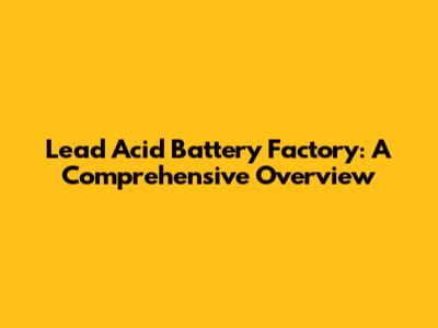 Lead Acid Battery Factory: A Comprehensive Overview