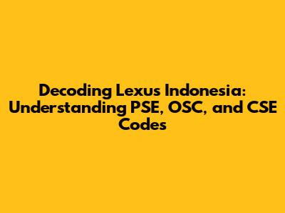 Lexus Indonesia: Decoding The PSE, OSC, And CSE Codes