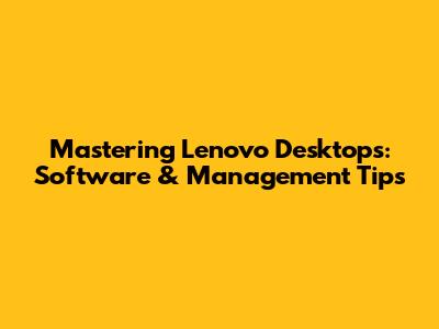 Mastering Lenovo Desktops: Software & Management Tips
