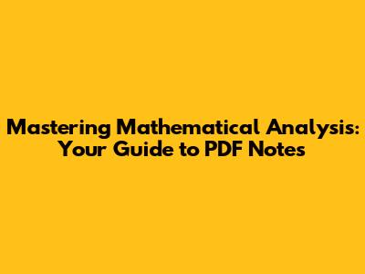 Mastering Mathematical Analysis: Your Guide To PDF Notes
