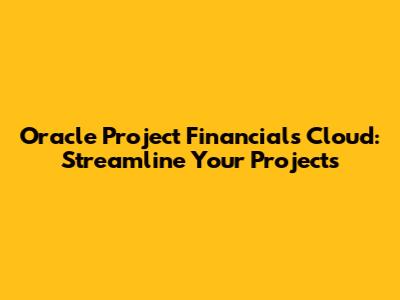 Oracle Project Financials Cloud: Streamline Your Projects