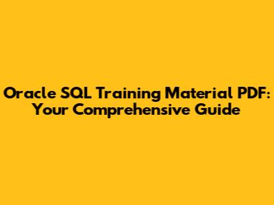 A good Oracle SQL training material PDF should cover these key areas: