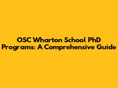 OSC Wharton School PhD Programs: A Comprehensive Guide