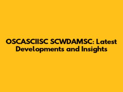 OSCASCIISC SCWDAMSC: Latest Developments And Insights