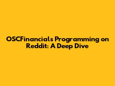 Deep Dive into OSCFinancials Programming Discussions on Reddit
