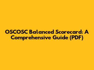 OSCOSC Balanced Scorecard: A Comprehensive Guide (PDF)