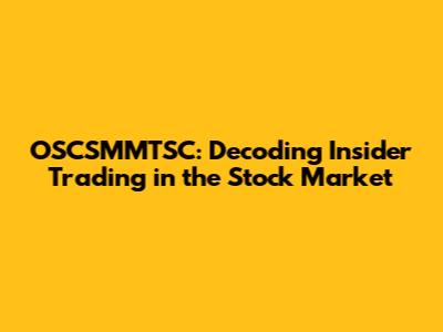Hey there, finance enthusiasts! Ever heard whispers in the market about OSCSMMTSC stock insider trading? Well, you're in the right place because we're about to dive deep into the fascinating, and sometimes murky, world of insider trading, specifically focusing on how it might relate to OSCSMMTSC. We'll break down what it is, why it matters, and what the deal is with those who play the game a little too close to the vest. Get ready for a thrilling ride!