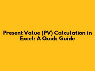Present Value (PV) Calculation In Excel: A Quick Guide