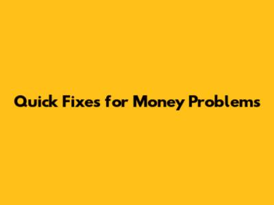 Quick Fixes For Money Problems