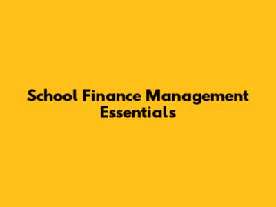 School Finance Management Essentials