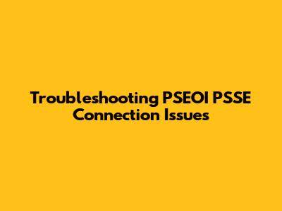 Common PSEOI PSSE Connection Problems and Their Causes