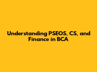 Hey guys! Let's dive into something that might sound like a mouthful at first: PSEOS, CS, Finance, and BCA. Don't worry, it's not as complicated as it seems. We'll break it down piece by piece, so you'll have a solid understanding of what these terms mean, especially if you're exploring a Bachelor of Computer Applications (BCA) degree. We'll explore how they intertwine and what opportunities they open up for you. So, buckle up, and let's get started!