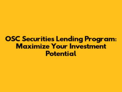 Unlock Potential: OSC Securities Lending Program