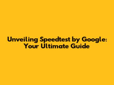 Unveiling Speedtest By Google: Your Ultimate Guide