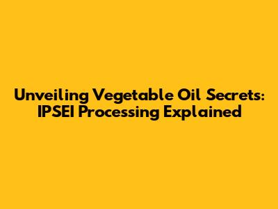 Unveiling Vegetable Oil Secrets: IPSEI Processing Explained